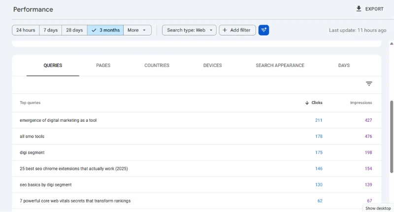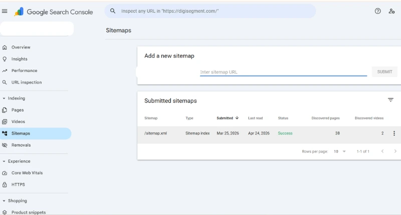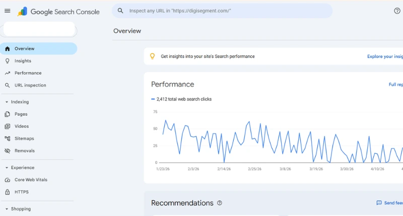 Digisegment is something I began working on six months ago. The first week after creating the account, before putting out any real content, I connected Google Search Console.